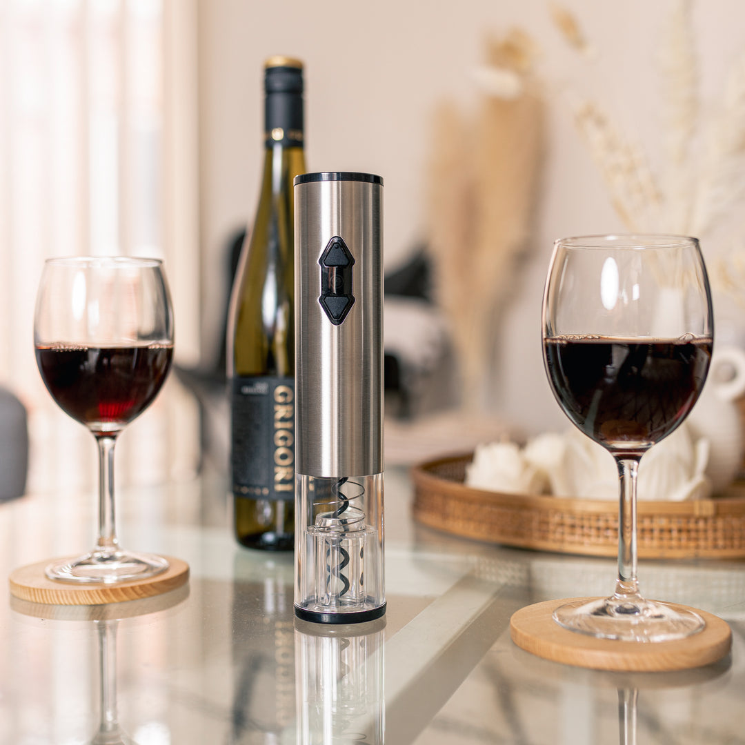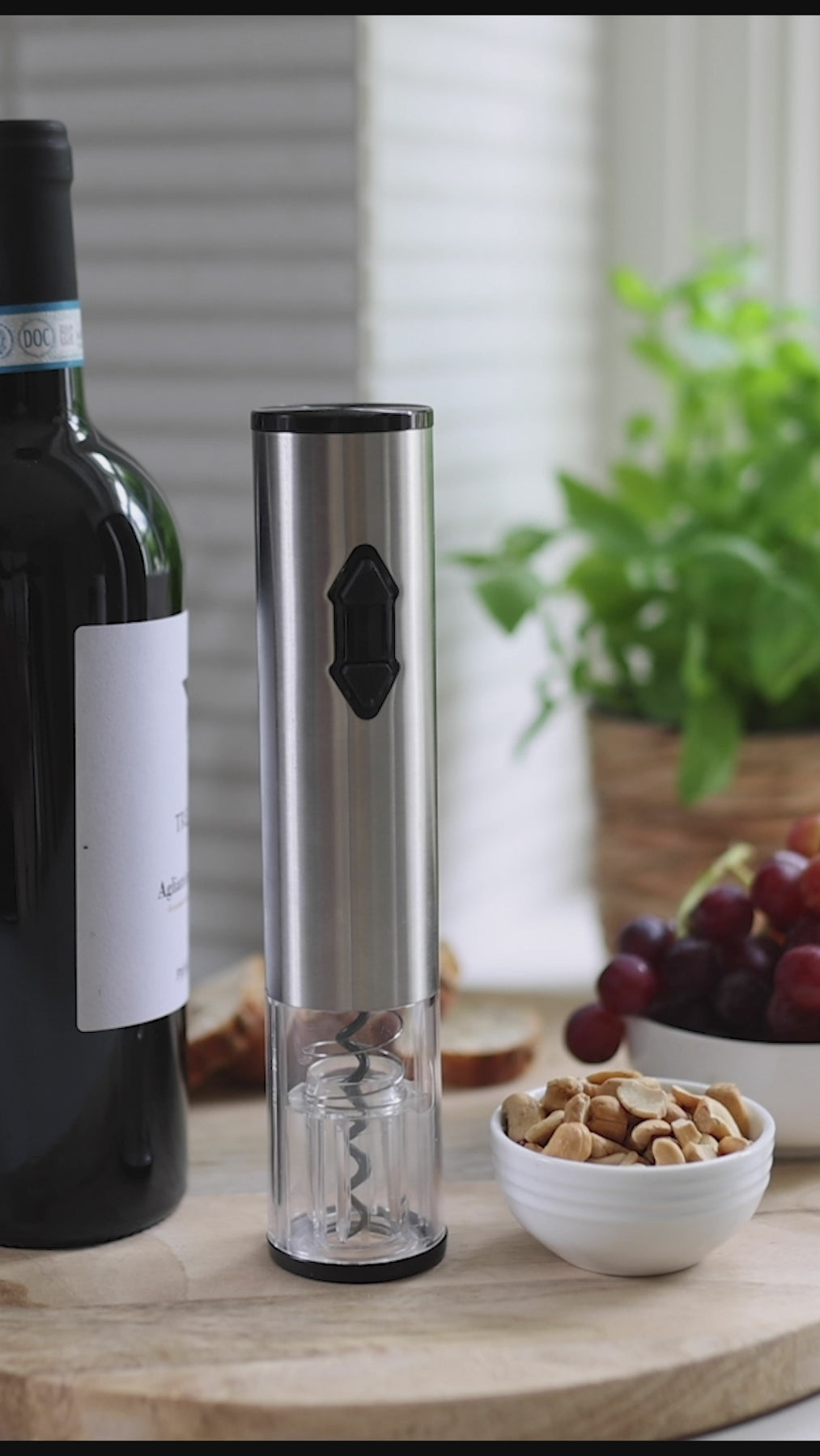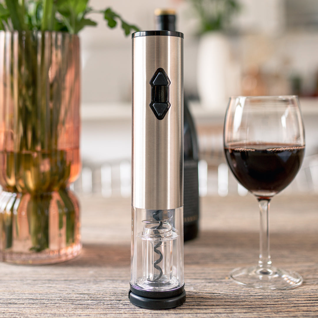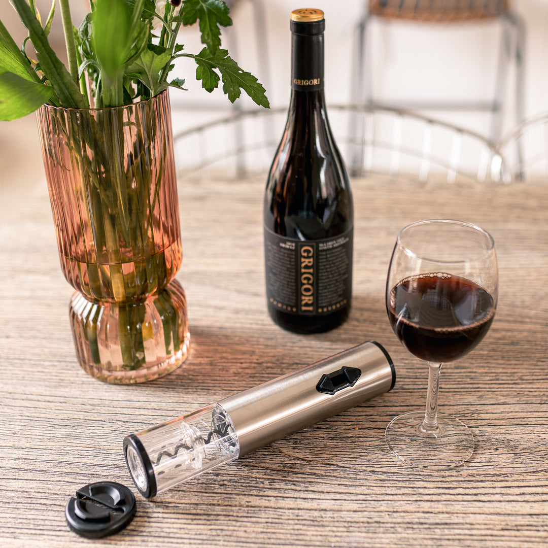 Seamlessly unscrew the cork with the electric opener.
