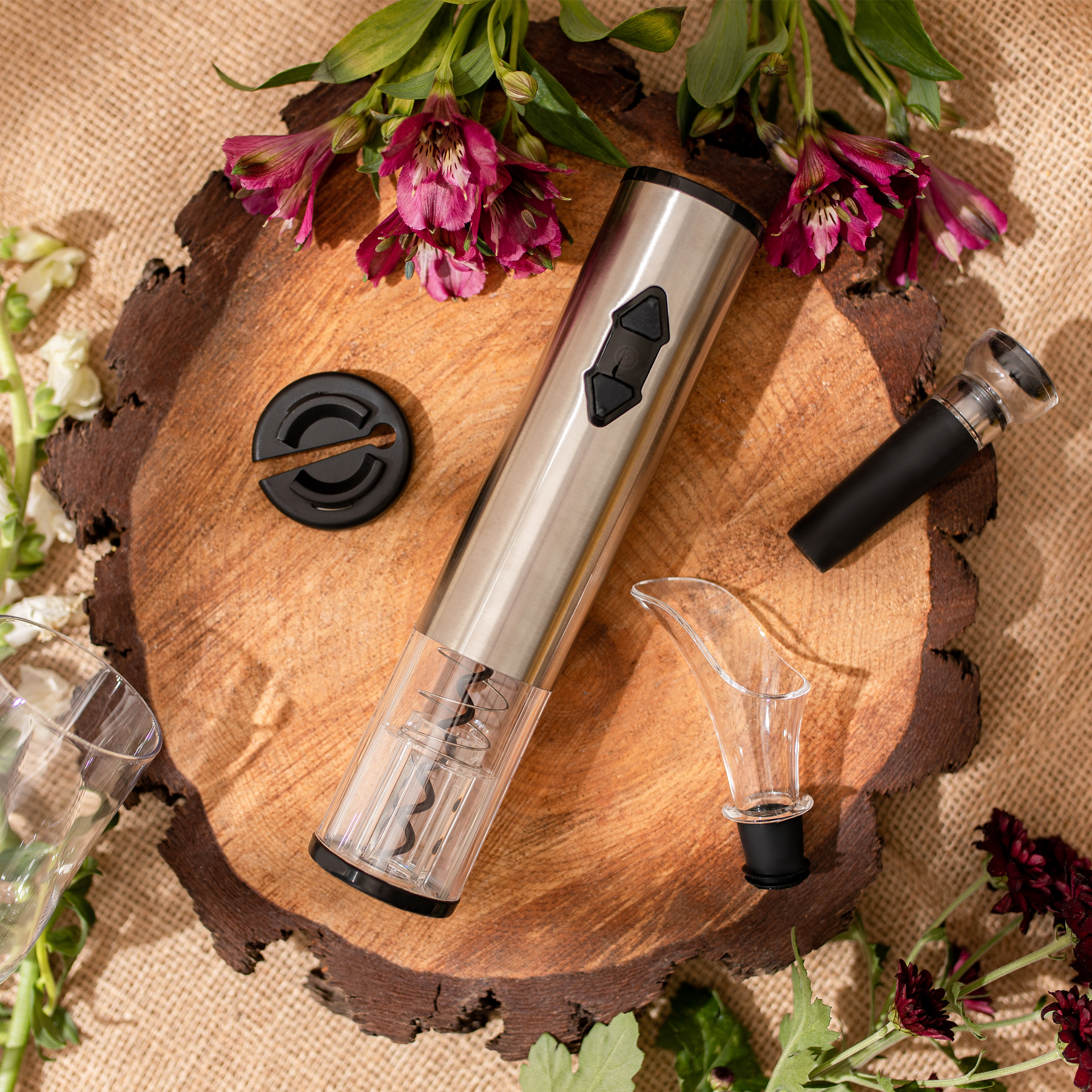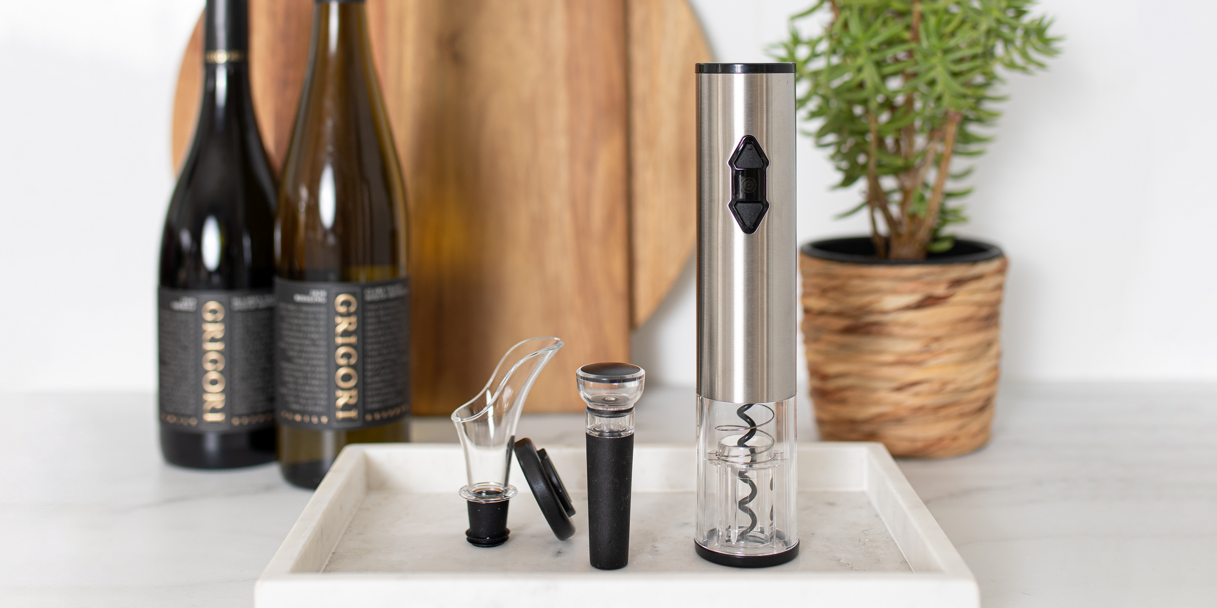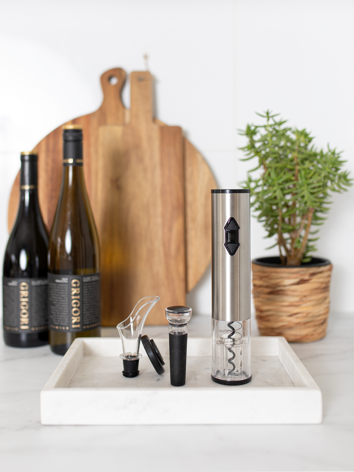 Seamlessly unscrew the cork with the electric opener.